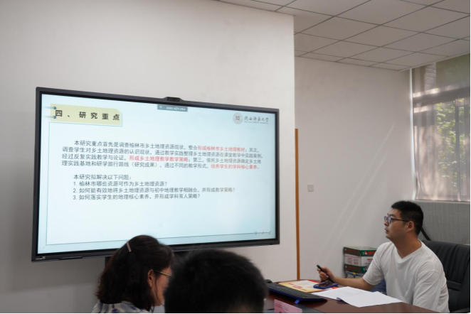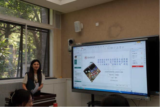 开题报告会上,毛哲茹、张庆和魏玮分别就《“双减”背景下教师负担的消减路径研究》《“素养为本”的高中化学教学设计与实施研究》《教师教育者队伍高质量专业发展路径探究—基于陕西师范类院校二十大视域下的“优师计划”研究》等课题,从研究背景和意义、研究现状、研究目标、研究内容、研究方法、创新点以及预期成果等八个方面进行现场汇报。