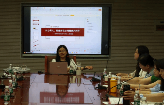 李瑛教授做“以心育人:构建师生心理健康共同体”主题讲座,讲解教师职业心理健康的核心要素、评估体系及影响因素,并提出切实可行的促进教师心理健康的策略。兰继军教授做“学校心理学在中小学的应用”主题讲座,针对当前中小学心理健康教育中存在的问题,提出加强心理健康教育、学校心理学、特殊教育等多学科协同,适应学生的差异化表现,落实全员育人,构建由理想信念层、教学育人层、职业健康层等多层面组成的教师以心育人体系。